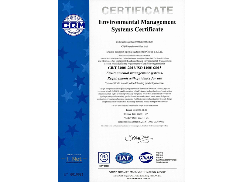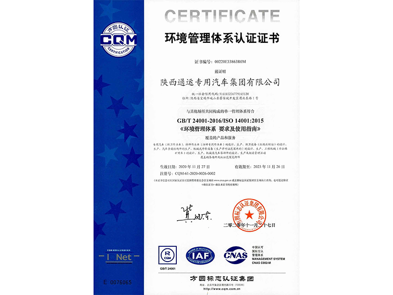 環(huán)境管理體系認(rèn)證證書(英文版)