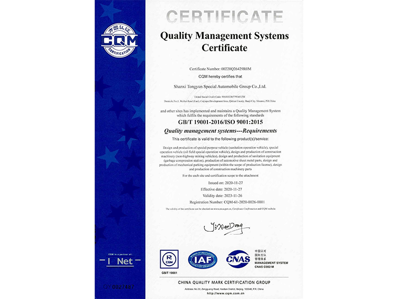質(zhì)量管理體系認(rèn)證證書(英文版)