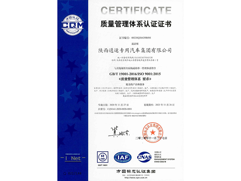質(zhì)量管理體系認(rèn)證證書(中文版)