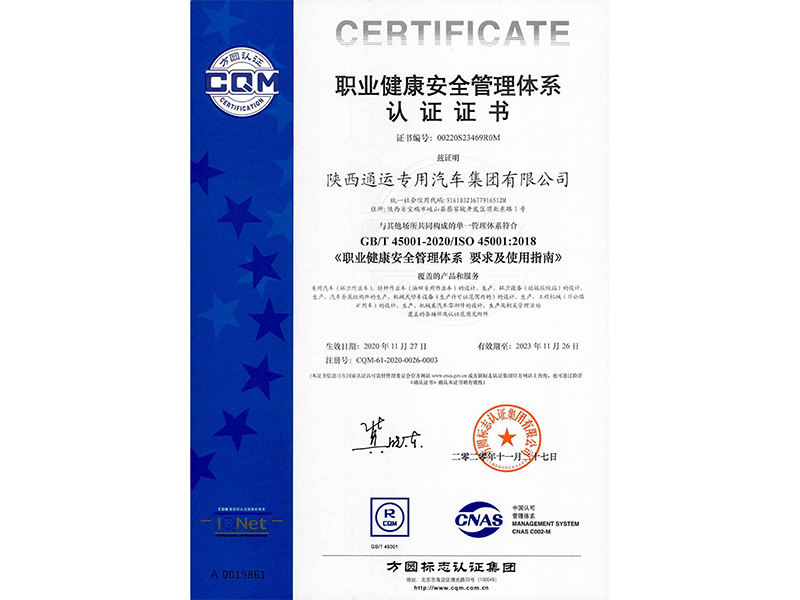 職業(yè)健康安全管理體系認(rèn)證證書(中...