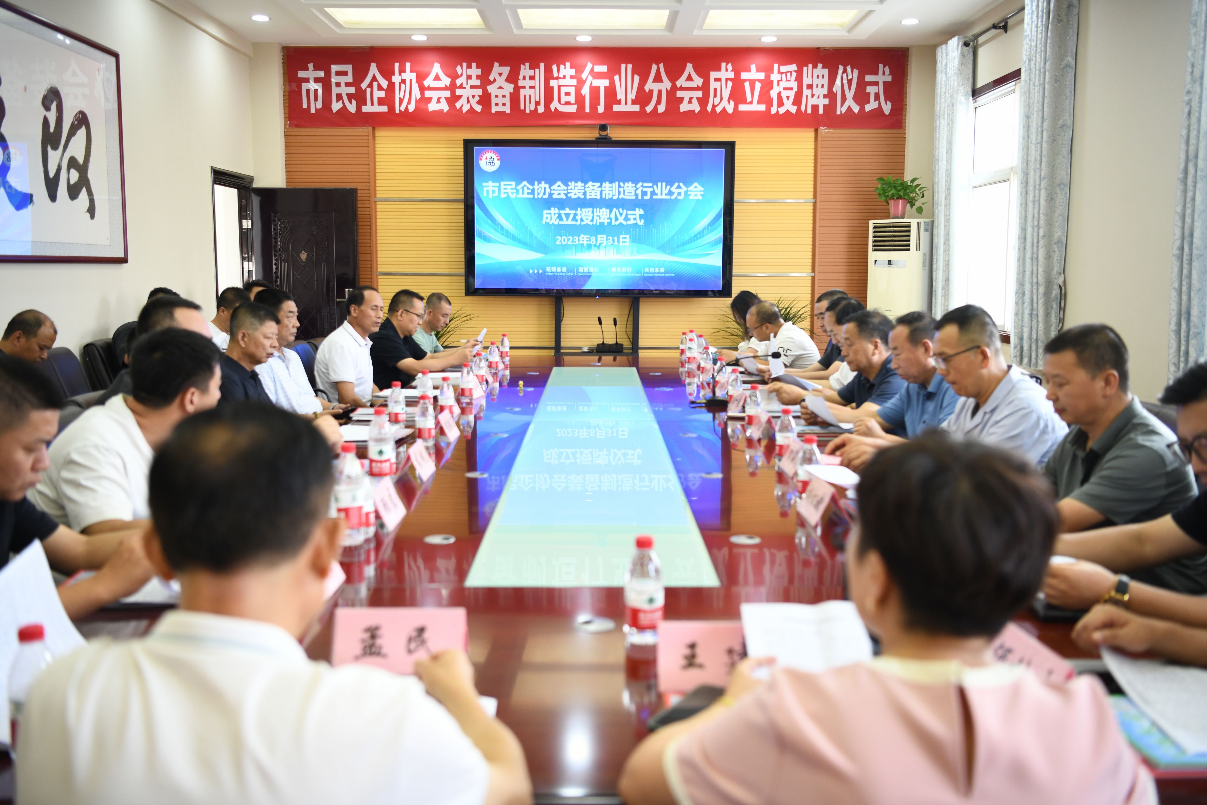 8月31日,市民企協(xié)會舉辦高質(zhì)量發(fā)展觀摩交流暨裝備制造行業(yè)分會成立授牌儀式在我公司順利召開。出席本次大會有市民企協(xié)會黨委書記、執(zhí)行會長劉一良,協(xié)會常務副會長賀軍會,市民企協(xié)會30余名從事裝備制造業(yè)的企業(yè)家參加了本次活動。