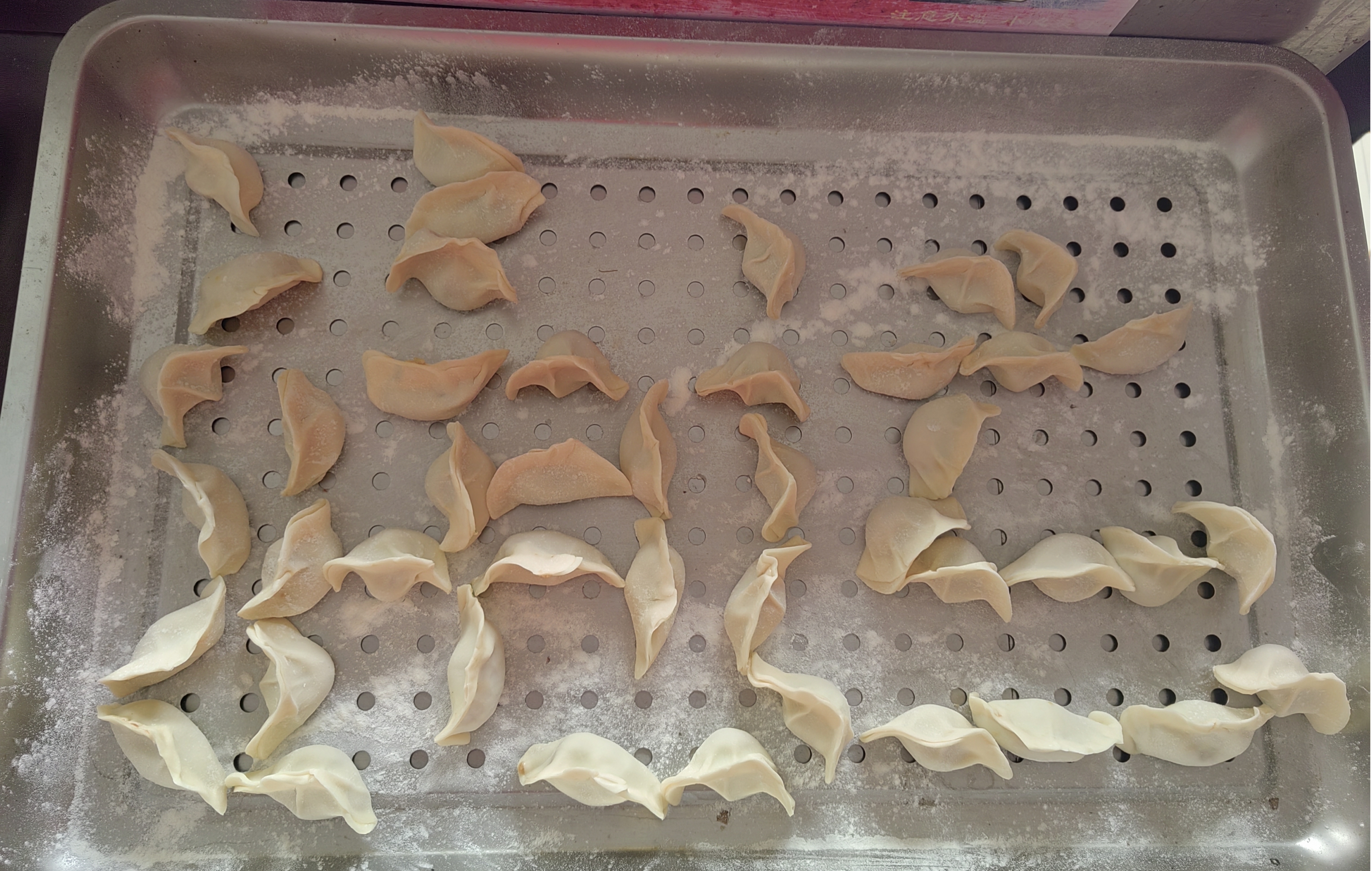 職工食堂提前精心準(zhǔn)備了肉餡、勺子、餃子皮、盤子等食材,三人一組,大家有說有笑切磋著包水餃的技巧,比較著餃子的形狀,現(xiàn)場(chǎng)洋溢著“家”的味道、“家”的溫馨。不一會(huì)兒的功夫,面前的盤子上就放滿了包好的水餃。