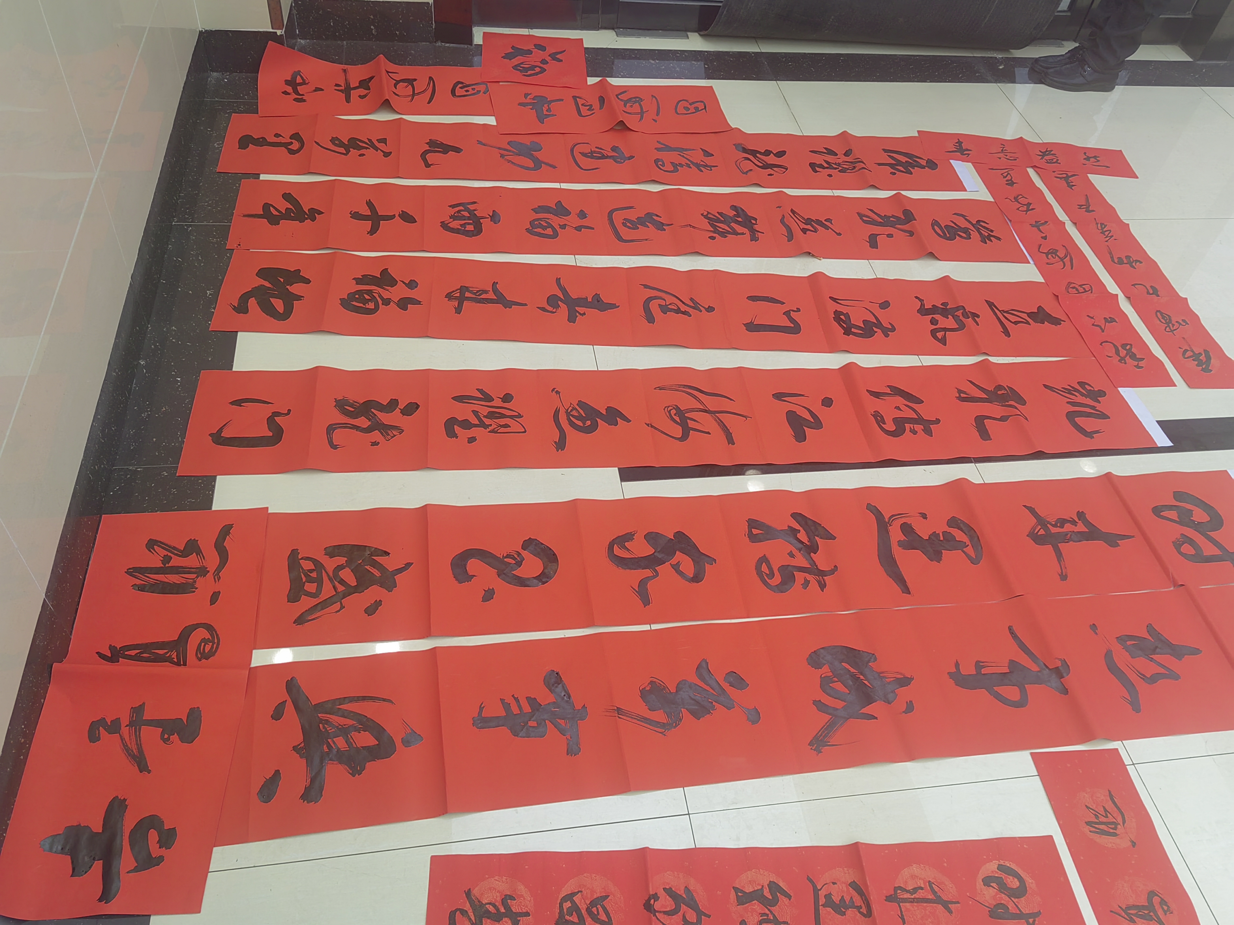 翰墨飄香添年味,金龍迎春歲月新?;顒?dòng)歷時(shí)8個(gè)多小時(shí),送出上千幅春聯(lián)。一筆一墨,一橫一豎,一撇一捺.......寫的是漢字,暖的是人心,飽含的是真情。黑墨紅紙間我們感受著筆墨丹青的獨(dú)特魅力,一幅幅暖意融融的春聯(lián),一聲聲濃情綿綿的祝福,讓大家的心緊緊“年”在一起,更期望全體職工新的一年福氣滿滿、平安如意!