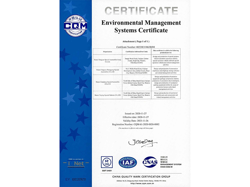 [ 上一頁 ] 環(huán)境管理體系認證證書(中文版)