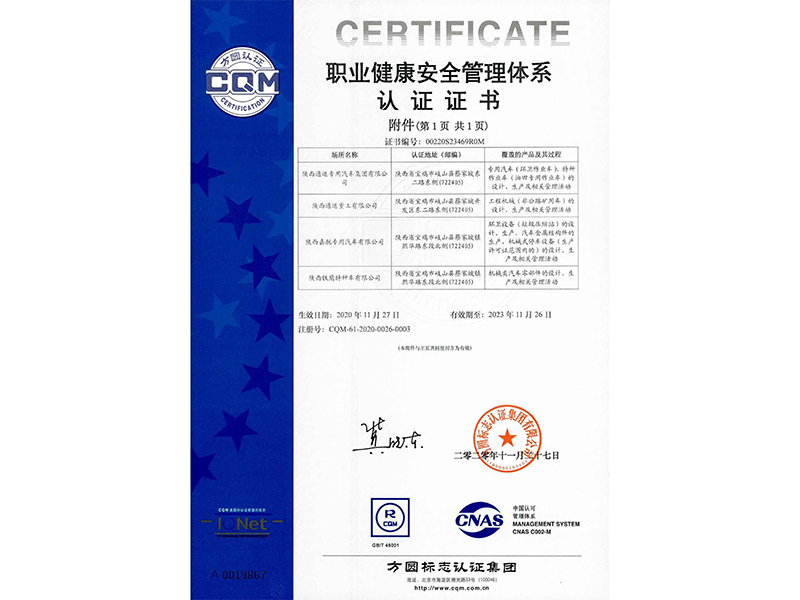 職業(yè)健康安全管理體系認(rèn)證證書(中文版)